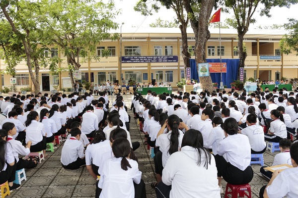 Các đại biểu và giáo viên, học sinh trường Trung học cơ sở Kim Long