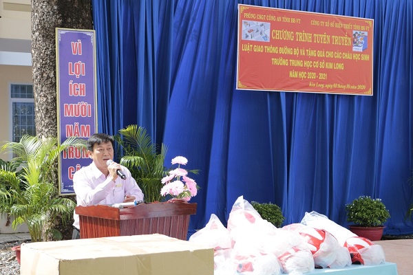 Tai nạn giao thông đang diễn ra từng ngày, từng giờ và có thể cướp đi mạng sống của con người bất kỳ lúc nào. Đáng buồn hơn khi không ít những nạn nhân của tai nạn giao thông là học sinh, sinh viên những mầm non tương lai của đất nước. Để góp phần đảm bảo an toàn cho chính bản thân và mọi người, việc chấp hành luật lệ khi tham gia giao thông phải trở thành thói quen của mọi người dân, nhất là thói quen khi tham gia giao thông bằng xe gắn máy, xe đạp điện phải đội mũ bảo hiểm. Thấy được tầm quan trọng của điều đó, sáng ngày 01/10/2020 Công ty TNHH MTV Xổ số kiến thiết tỉnh Bà Rịa - Vũng Tàu phối hợp cùng Phòng Cảnh sát giao thông Công an tỉnh Bà Rịa - Vũng Tàu đã tổ chức buổi tuyên truyền về Luật Giao thông và tặng mũ bảo hiểm, tập học sinh cho học sinh trường Trung học cơ sở Kim Long, huyện Châu Đức, tỉnh Bà Rịa - Vũng Tàu.