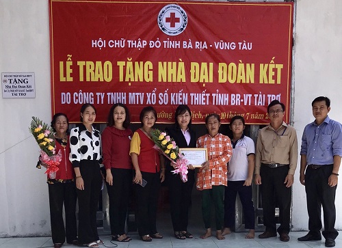 Ngày 10/7, Hội Chữ thập đỏ (CTĐ) tỉnh phối hợp với Công ty TNHH MTV Xổ số kiến thiết tỉnh tổ chức trao nhà “đại đoàn kết” cho 2 hộ nghèo gồm: bà Nguyễn Thị Thùy Trâm (ấp 3B, xã Bàu Lâm, huyện Xuyên Mộc) và bà Nguyễn Thị Liên (ấp 4, khu phố 5, phường Hắc Dịch, TX. Phú Mỹ). Mỗi hộ được Công ty TNHH MTV Xổ số kiến thiết tỉnh hỗ trợ 60 triệu đồng.