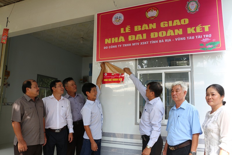 Đại diện Công ty Xổ số kiến thiết Bà Rịa - Vũng Tàu trao nhà Đại đoàn kết cho các gia đình nghèo khó khăn
