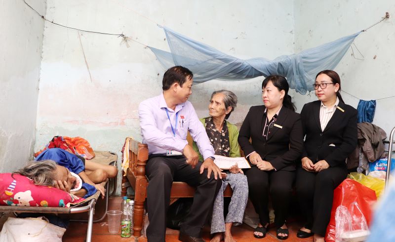 ông Bùi Duy Chất, Phó Chủ tịch UBND phường Thắng Tam đến thăm hỏi, động viên bà Hiệp.