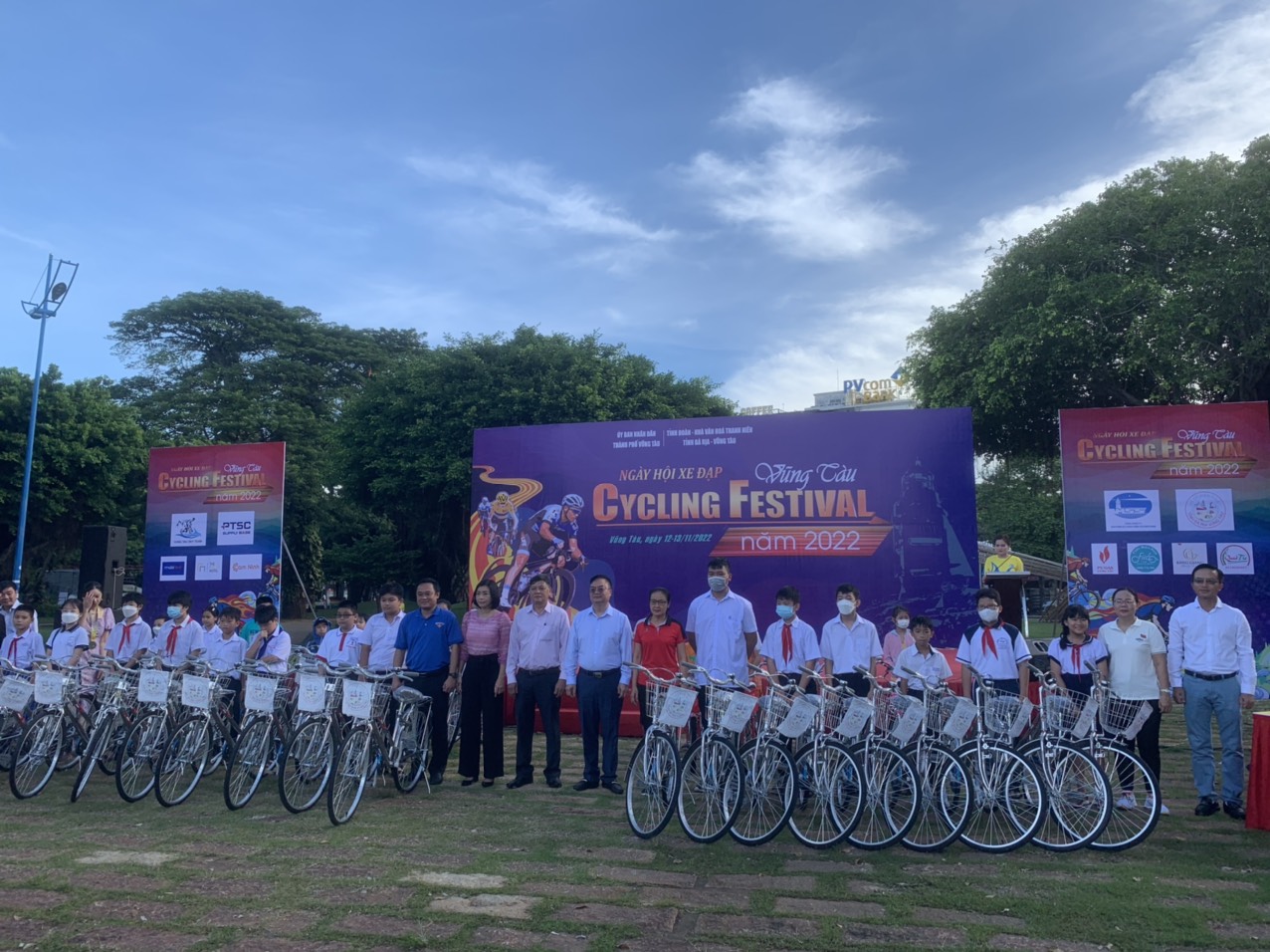 Đại diện Công ty Xổ số kiến thiết tỉnh Bà Rịa - Vũng Tàu trao xe đạp cho trẻ em nghèo học giỏi