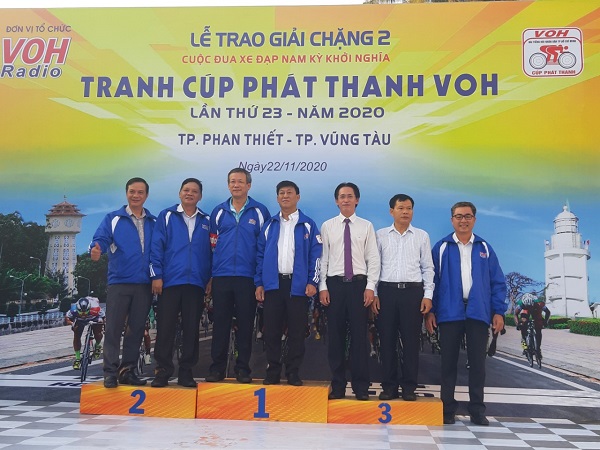 Sáng 23/11, lễ trao giải chặng 2 cuộc đua xe đạp Nam kỳ Khởi nghĩa 2020 Tranh cúp phát thanh VOH 2020 đã diễn ra tại TP. Vũng Tàu, tỉnh Bà Rịa – Vũng Tàu. Ông Dương Minh Tú, Giám đốc Công ty Xổ số Kiến thiết Bà Rịa – Vũng Tàu, đã trao giải cho VĐV Nguyễn Huỳnh Đăng Khoa – người đạt thành tích xuất sắc trong chặng đua khi thâu tóm cả áo xanh lẫn áo vàng.