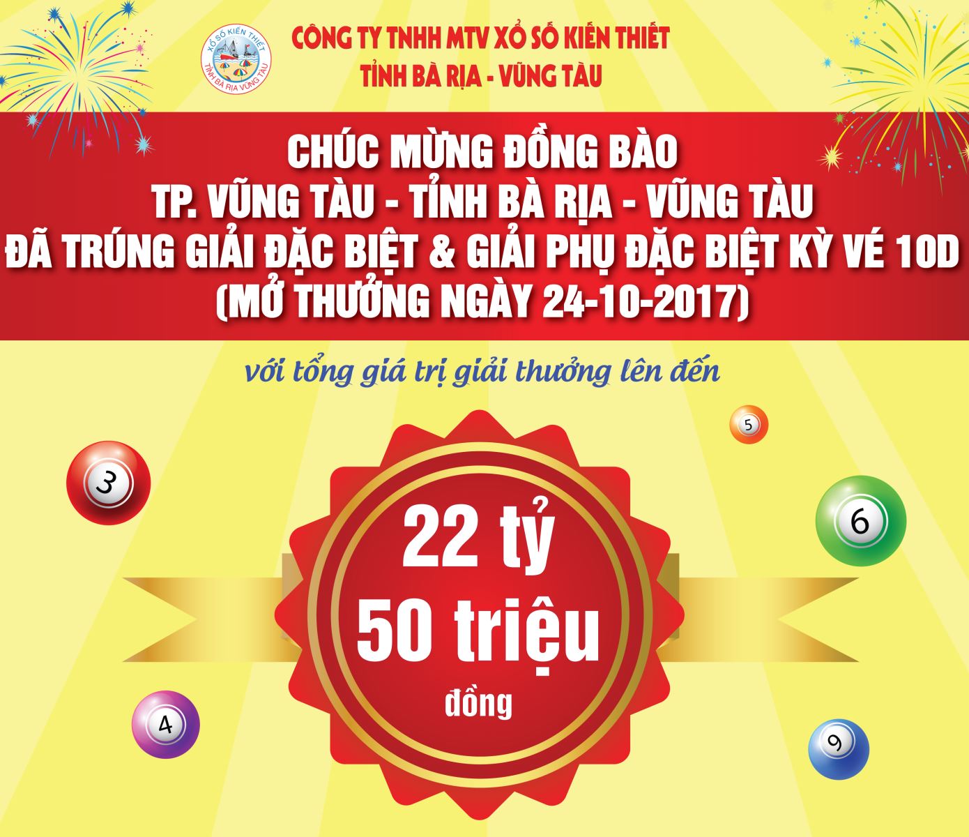 Tổng số tiền Công ty trả thưởng tính đến ngày 27/10/2017 là: 1.475.823.400.000đ, trong đó trả thưởng giải Đặc biệt là 598.000.000.000đ (Năm trăm chín mươi tám tỷ đồng).