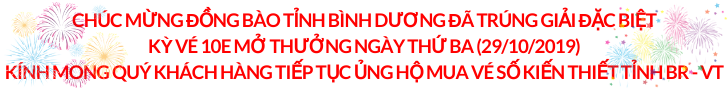 Loại vé 10E mở thưởng ngày thứ Ba (29/10/2019) của Công ty TNHH MTV Xổ số kiến thiết tỉnh Bà Rịa – Vũng Tàu phát hành: Khách hàng Tỉnh Bình Dương đã trúng Giải đặc biệt.