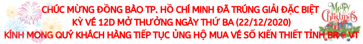 * Kỳ vé 12D mở thưởng ngày thứ Ba (22/12/2020) của Công ty TNHH MTV Xổ số kiến thiết tỉnh Bà Rịa – Vũng Tàu phát hành: Khách hàng TP. Hồ Chí Minh đã trúng Giải đặc biệt.
