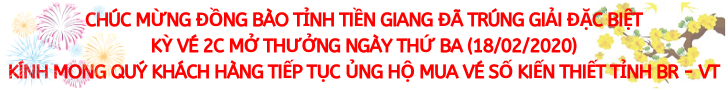 * Kỳ vé 2C mở thưởng ngày thứ Ba (18/02/2020) của Công ty TNHH MTV Xổ số kiến thiết tỉnh Bà Rịa – Vũng Tàu phát hành: Khách hàng Tỉnh Tiền Giang đã trúng Giải đặc biệt.