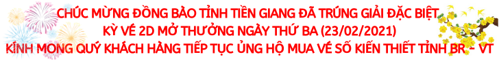 * Kỳ vé 2D mở thưởng ngày thứ Ba (23/02/2021) của Công ty TNHH MTV Xổ số kiến thiết tỉnh Bà Rịa – Vũng Tàu phát hành: Khách hàng Tỉnh Tiền Giang đã trúng Giải đặc biệt.
