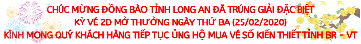 * Kỳ vé 2D mở thưởng ngày thứ Ba (25/02/2020) của Công ty TNHH MTV Xổ số kiến thiết tỉnh Bà Rịa – Vũng Tàu phát hành: Khách hàng Tỉnh Long An đã trúng Giải đặc biệt.