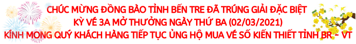 * Kỳ vé 3A mở thưởng ngày thứ Ba (02/03/2021) của Công ty TNHH MTV Xổ số kiến thiết tỉnh Bà Rịa – Vũng Tàu phát hành: Khách hàng Tỉnh Bến Tre đã trúng Giải đặc biệt.