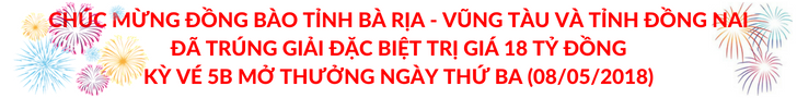 Giải đặc biệt Kỳ vé 5B mở thưởng ngày 08/05/2018