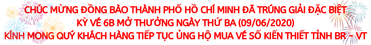 * Kỳ vé 6B mở thưởng ngày thứ Ba (09/06/2020) của Công ty TNHH MTV Xổ số kiến thiết tỉnh Bà Rịa – Vũng Tàu phát hành: Khách hàng TP. Hồ Chí Minh đã trúng Giải đặc biệt.
