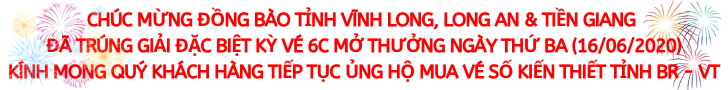 * Kỳ vé 6C mở thưởng ngày thứ Ba (16/06/2020) của Công ty TNHH MTV Xổ số kiến thiết tỉnh Bà Rịa – Vũng Tàu phát hành: Khách hàng Tỉnh Vĩnh Long, Long An & Tiền Giang đã trúng Giải đặc biệt.