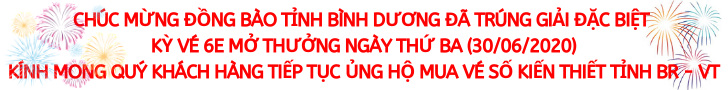* Kỳ vé 6E mở thưởng ngày thứ Ba (30/06/2020) của Công ty TNHH MTV Xổ số kiến thiết tỉnh Bà Rịa – Vũng Tàu phát hành: Khách hàng Tỉnh Bình Dương đã trúng Giải đặc biệt.