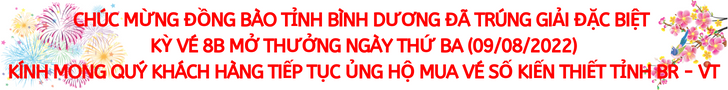 * Kỳ vé 8B mở thưởng ngày thứ Ba (09/08/2022) của Công ty TNHH MTV Xổ số kiến thiết tỉnh Bà Rịa – Vũng Tàu phát hành: Khách hàng Tỉnh Bình Dương đã trúng Giải đặc biệt.
