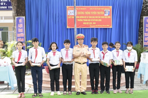 Tai nạn giao thông đang diễn ra từng ngày, từng giờ và có thể cướp đi mạng sống của con người bất kỳ lúc nào. Đáng buồn hơn khi không ít những nạn nhân của tai nạn giao thông là học sinh, sinh viên những mầm non tương lai của đất nước. Để góp phần đảm bảo an toàn cho chính bản thân và mọi người, việc chấp hành luật lệ khi tham gia giao thông phải trở thành thói quen của mọi người dân, nhất là thói quen khi tham gia giao thông bằng xe gắn máy, xe đạp điện phải đội mũ bảo hiểm. Thấy được tầm quan trọng của điều đó, sáng ngày 01/10/2020 Công ty TNHH MTV Xổ số kiến thiết tỉnh Bà Rịa - Vũng Tàu phối hợp cùng Phòng Cảnh sát giao thông Công an tỉnh Bà Rịa - Vũng Tàu đã tổ chức buổi tuyên truyền về Luật Giao thông và tặng mũ bảo hiểm, tập học sinh cho học sinh trường Trung học cơ sở Kim Long, huyện Châu Đức, tỉnh Bà Rịa - Vũng Tàu.