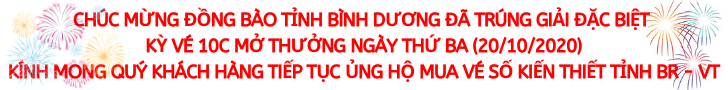 * Kỳ vé 10C mở thưởng ngày thứ Ba (20/10/2020) của Công ty TNHH MTV Xổ số kiến thiết tỉnh Bà Rịa – Vũng Tàu phát hành: Khách hàng Tỉnh Bình Dương đã trúng Giải đặc biệt.