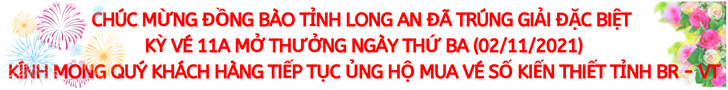 * Kỳ vé 11A mở thưởng ngày thứ Ba (02/11/2021) của Công ty TNHH MTV Xổ số kiến thiết tỉnh Bà Rịa – Vũng Tàu phát hành: Khách hàng Tỉnh Long An đã trúng Giải đặc biệt.