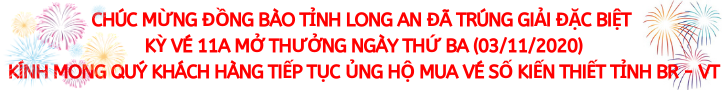 * Kỳ vé 11A mở thưởng ngày thứ Ba (03/11/2020) của Công ty TNHH MTV Xổ số kiến thiết tỉnh Bà Rịa – Vũng Tàu phát hành: Khách hàng Tỉnh Long An đã trúng Giải đặc biệt.