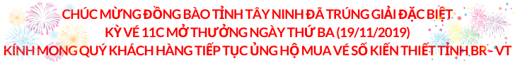 - Công ty đã trả thưởng 06 tờ vé trúng giải Đặc biệt của kỳ vé 11C mở thưởng ngày 19/11/2019 với tổng giá trị trả thưởng là: 12.000.000.000đ (Khách hàng Tỉnh Tây Ninh).