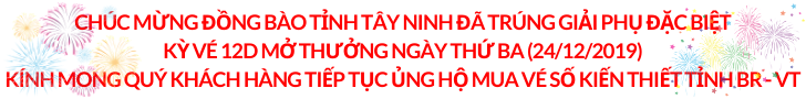 Loại vé 12D mở thưởng ngày thứ Ba (24/12/2019) của Công ty TNHH MTV Xổ số kiến thiết tỉnh Bà Rịa – Vũng Tàu phát hành: Khách hàng Tỉnh Tây Ninh đã trúng Giải phụ đặc biệt.