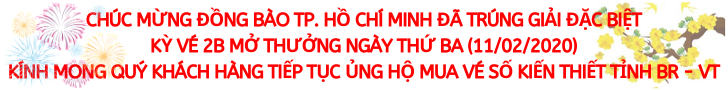 * Kỳ vé 2B mở thưởng ngày thứ Ba (11/02/2020) của Công ty TNHH MTV Xổ số kiến thiết tỉnh Bà Rịa – Vũng Tàu phát hành: Khách hàng TP. Hồ Chí Minh đã trúng Giải đặc biệt.