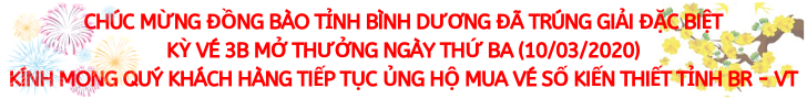 * Kỳ vé 3B mở thưởng ngày thứ Ba (10/03/2020) của Công ty TNHH MTV Xổ số kiến thiết tỉnh Bà Rịa – Vũng Tàu phát hành: Khách hàng Tỉnh Bình Dương đã trúng Giải đặc biệt.