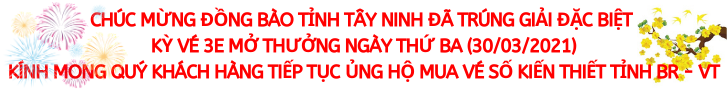 * Kỳ vé 3E mở thưởng ngày thứ Ba (30/03/2021) của Công ty TNHH MTV Xổ số kiến thiết tỉnh Bà Rịa – Vũng Tàu phát hành: Khách hàng Tỉnh Tây Ninh đã trúng Giải đặc biệt.