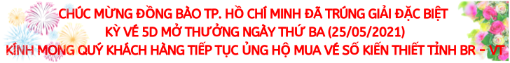 * Kỳ vé 5D mở thưởng ngày thứ Ba (25/05/2021) của Công ty TNHH MTV Xổ số kiến thiết tỉnh Bà Rịa – Vũng Tàu phát hành: Khách hàng TP. Hồ Chí Minh đã trúng Giải đặc biệt.