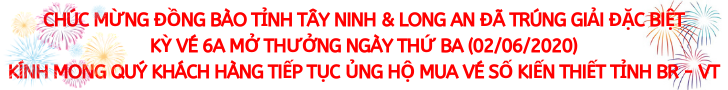 * Kỳ vé 6A mở thưởng ngày thứ Ba (02/06/2020) của Công ty TNHH MTV Xổ số kiến thiết tỉnh Bà Rịa – Vũng Tàu phát hành: Khách hàng Tỉnh Tây Ninh và Tỉnh Long An đã trúng Giải đặc biệt.