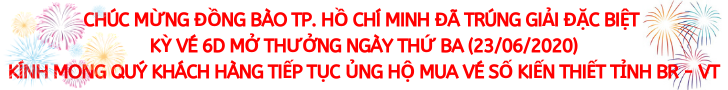 * Kỳ vé 6D mở thưởng ngày thứ Ba (23/06/2020) của Công ty TNHH MTV Xổ số kiến thiết tỉnh Bà Rịa – Vũng Tàu phát hành: Khách hàng TP. Hồ Chí Minh đã trúng Giải đặc biệt.