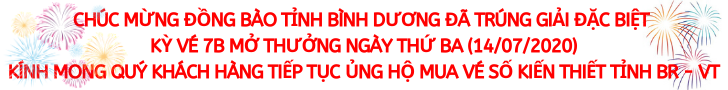 * Kỳ vé 7B mở thưởng ngày thứ Ba (14/07/2020) của Công ty TNHH MTV Xổ số kiến thiết tỉnh Bà Rịa – Vũng Tàu phát hành: Khách hàng Tỉnh Bình Dương đã trúng Giải đặc biệt.