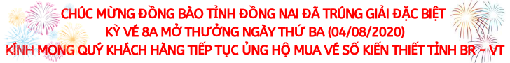 * Kỳ vé 8A mở thưởng ngày thứ Ba (04/08/2020) của Công ty TNHH MTV Xổ số kiến thiết tỉnh Bà Rịa – Vũng Tàu phát hành: Khách hàng Tỉnh Đồng Nai đã trúng Giải đặc biệt.