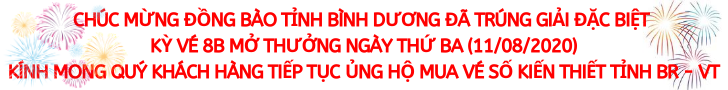 * Kỳ vé 8B mở thưởng ngày thứ Ba (11/08/2020) của Công ty TNHH MTV Xổ số kiến thiết tỉnh Bà Rịa – Vũng Tàu phát hành: Khách hàng Tỉnh Bình Dương đã trúng Giải đặc biệt.