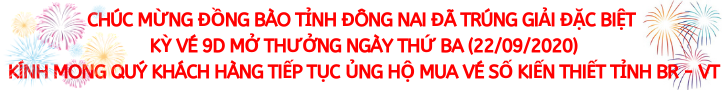 * Kỳ vé 9D mở thưởng ngày thứ Ba (22/09/2020) của Công ty TNHH MTV Xổ số kiến thiết tỉnh Bà Rịa – Vũng Tàu phát hành: Khách hàng Tỉnh Đồng Nai đã trúng Giải đặc biệt.